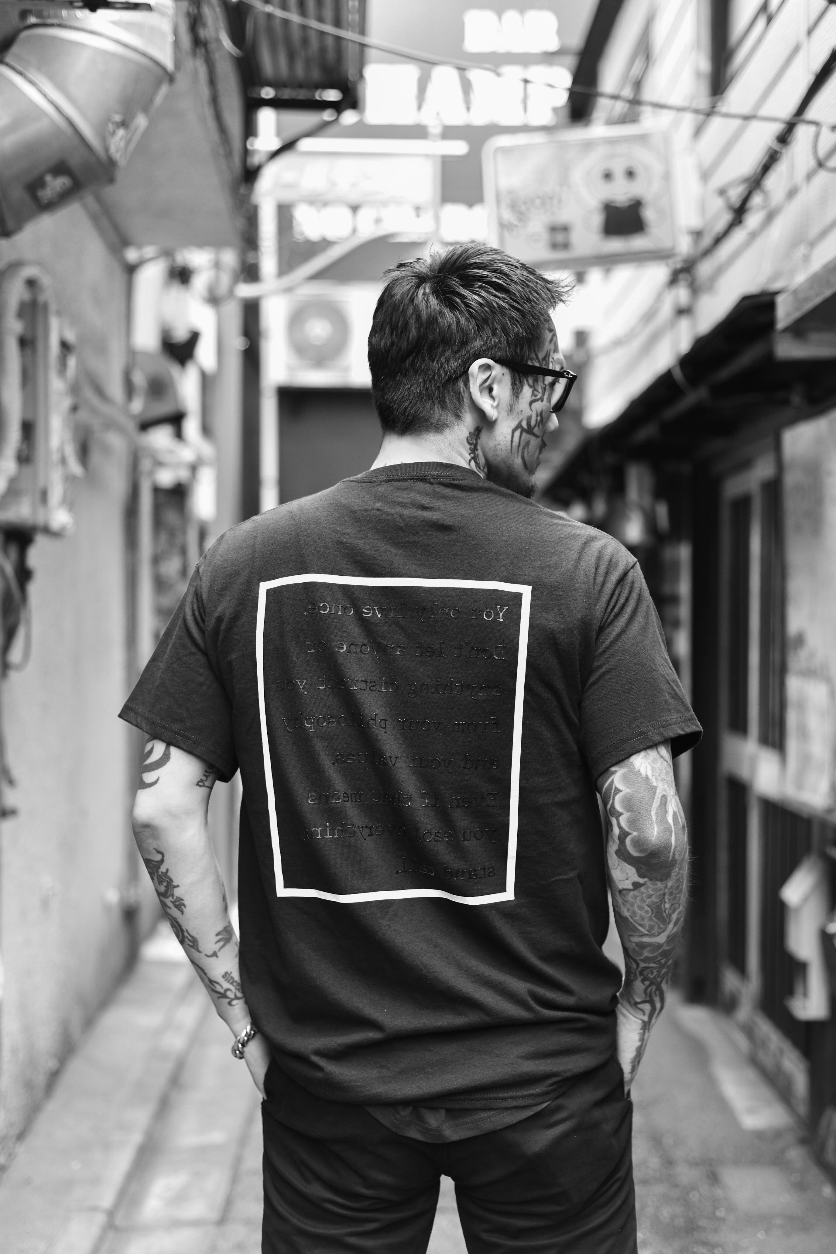 背中には反転させたメッセージをデザインしたT-shirtになります。